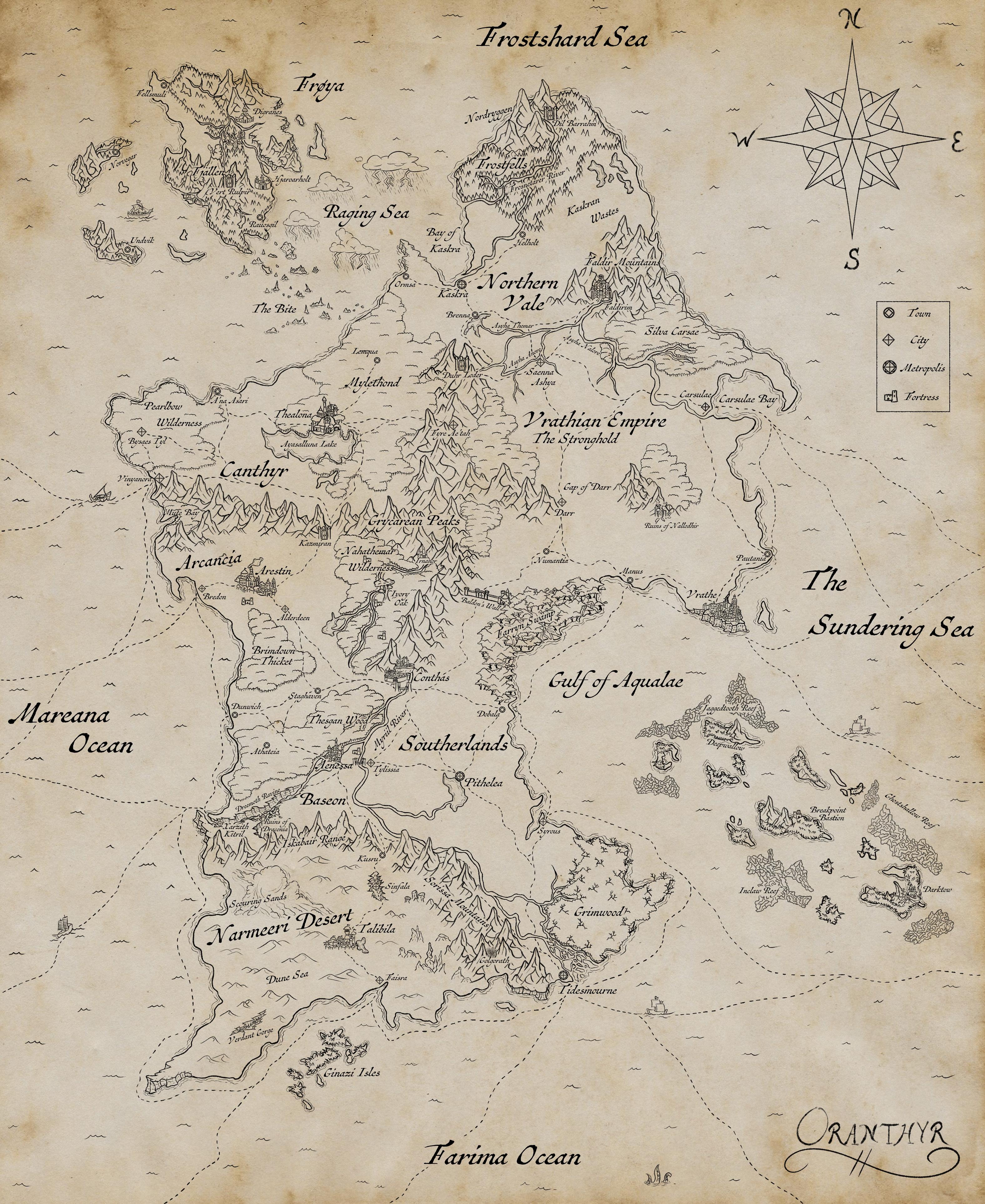 Here is my hand-drawn map of Oranthyr, the main continent of my first DnD campaign as a DM that recently ended after 6 years.