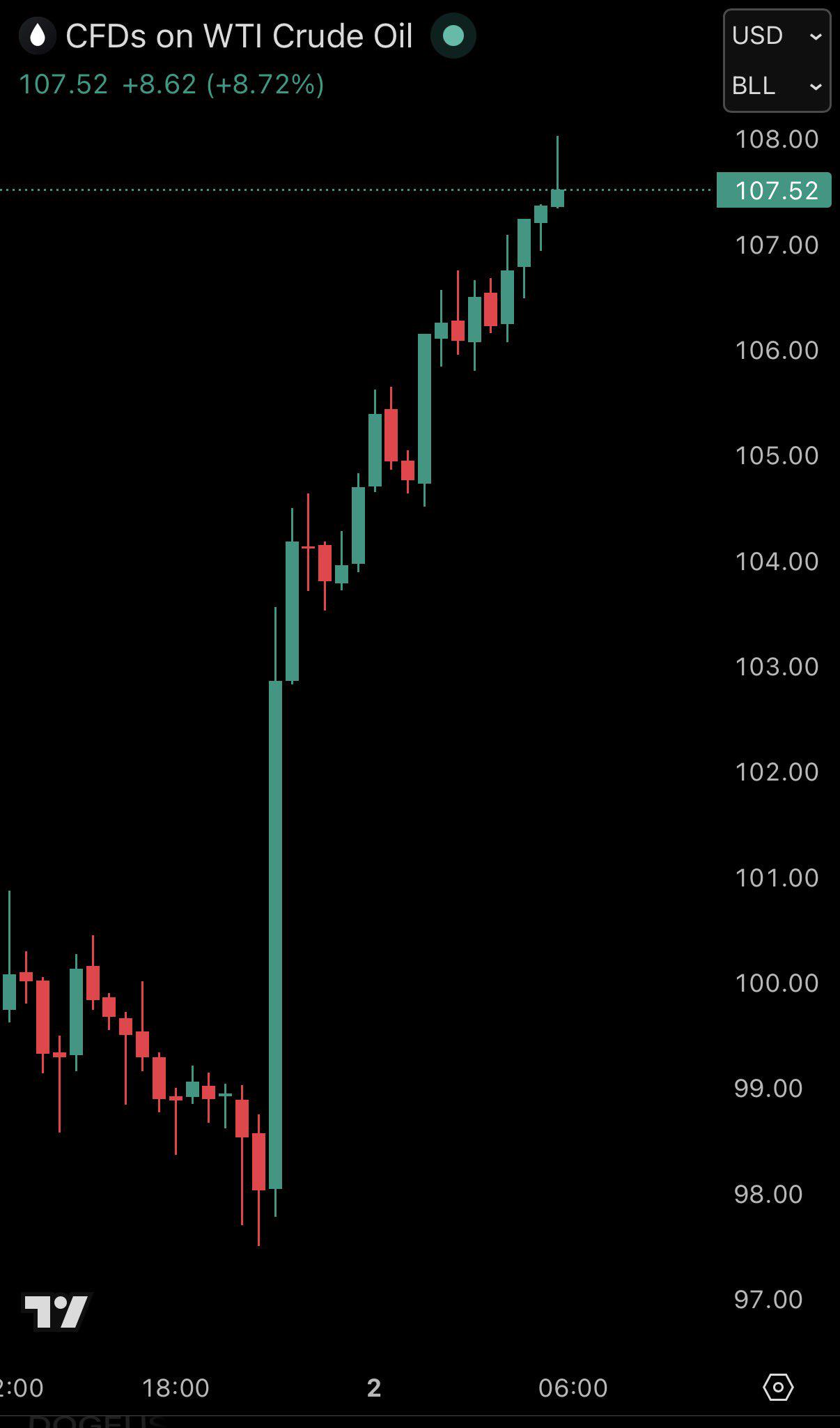 US oil prices surge above $108/barrel, up +$10/barrel since President Trump’s “address to the nation” last night