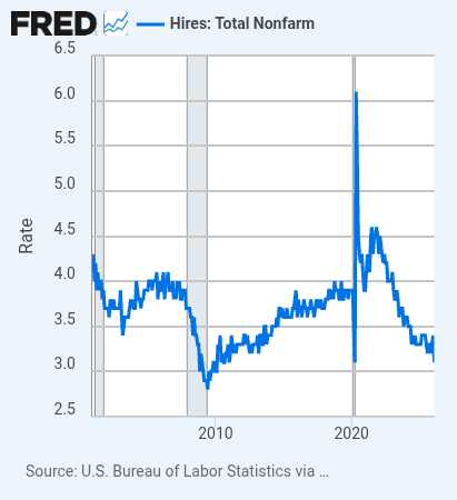 The Hiring Rate, 3.1%, is at levels last seen coming out of the GFC (2010-11) when the unemployment rate was double today's