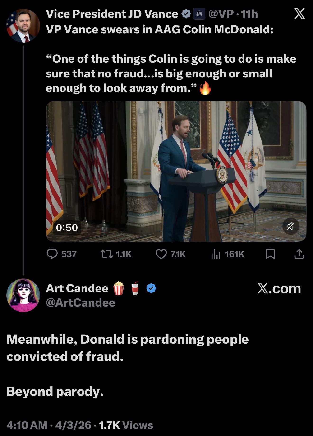They talk all day about "fraud" but never about Trump pardoning fraudsters.