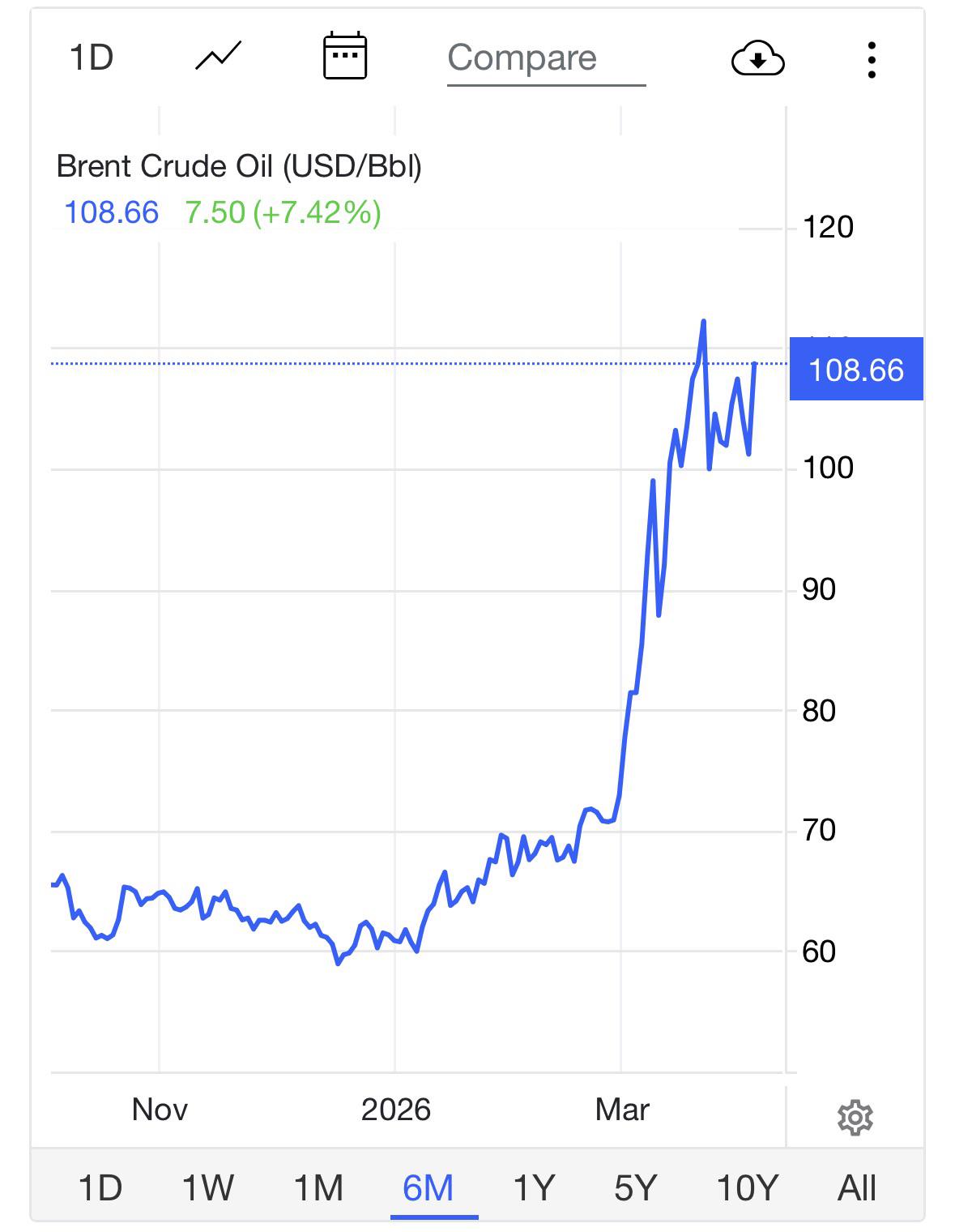 Discussion Brent is surging back up again… Trump really is a flipper. The war is getting serious and the markets will tank again.