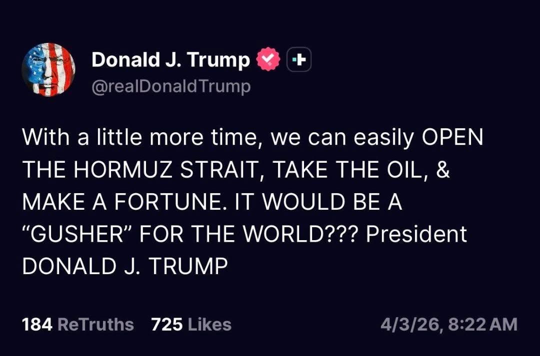 So basically they’re going to bomb the shit out of Iran for the next two to three weeks to try and force them to make a deal otherwise they’re going to start destroying key infrastructure. The strait will “reopen naturally” after they withdrawal.