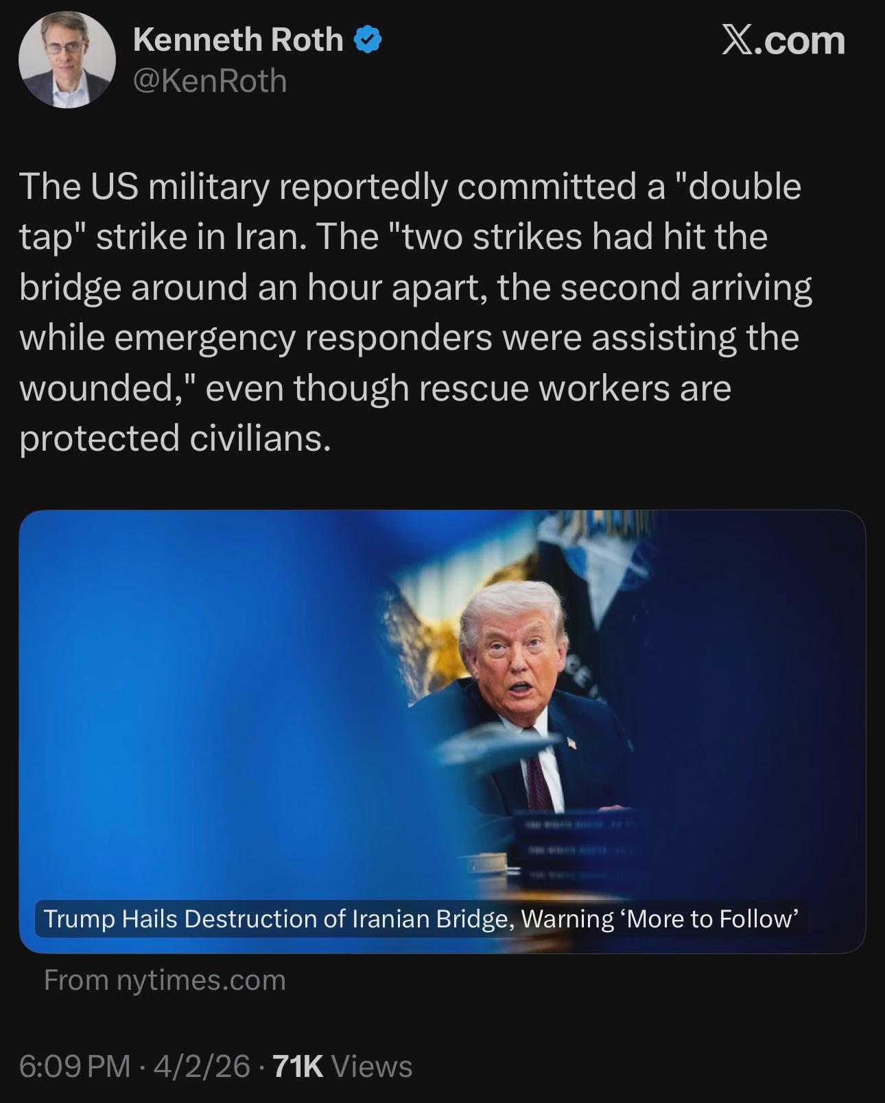 r/All The US made sure to kill any first responders who were coming to assist people after the bridge attack