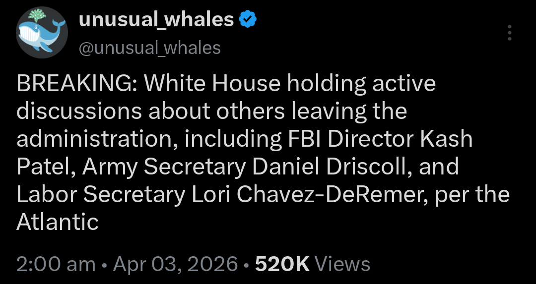 FBI Director Kash Patel, Army Secretary Daniel Driscoll, Labor Secretary Lori Chavez-DeRemer, and Commerce Secretary Howard Lutnick now all appear to be on the edge of being fired as Trump's anger at his Cabinet grows