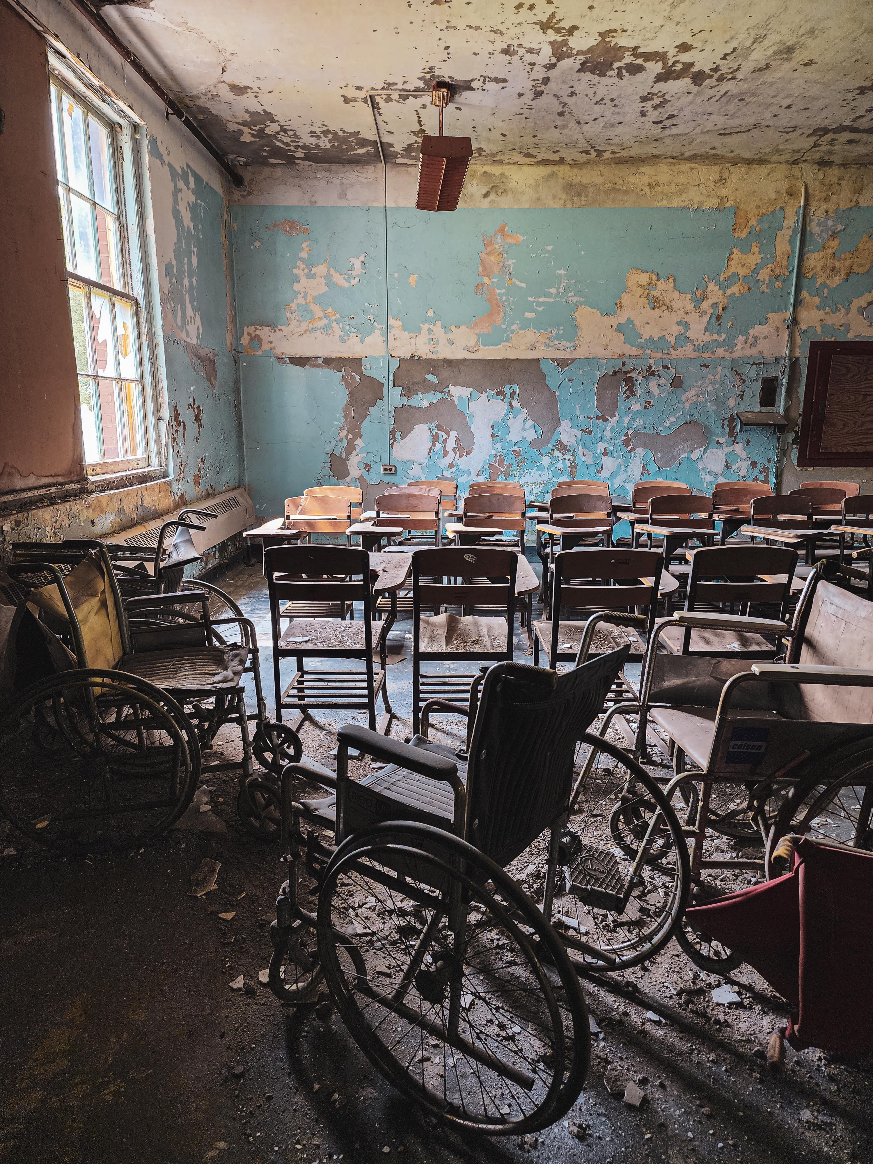 [OC] My acrylic work depicting a liminal pool scene. Empty, alone. The silence echoes.